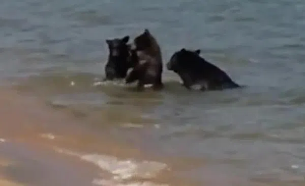 Imagine relaxing on the beach…you get up from sunbathing to take a dip in the ocean, when you see a family of BEARS in the water! Tourists immediately hopped out of the water when these unexpected guests wanted to join in summer fun. Somewhere right now a movie director is thinking of ways to retool the classic ‘JAWS’ and add bears~
