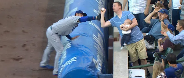Fan Catches Ball, Barehanded, Holding Baby! [VIDEO]