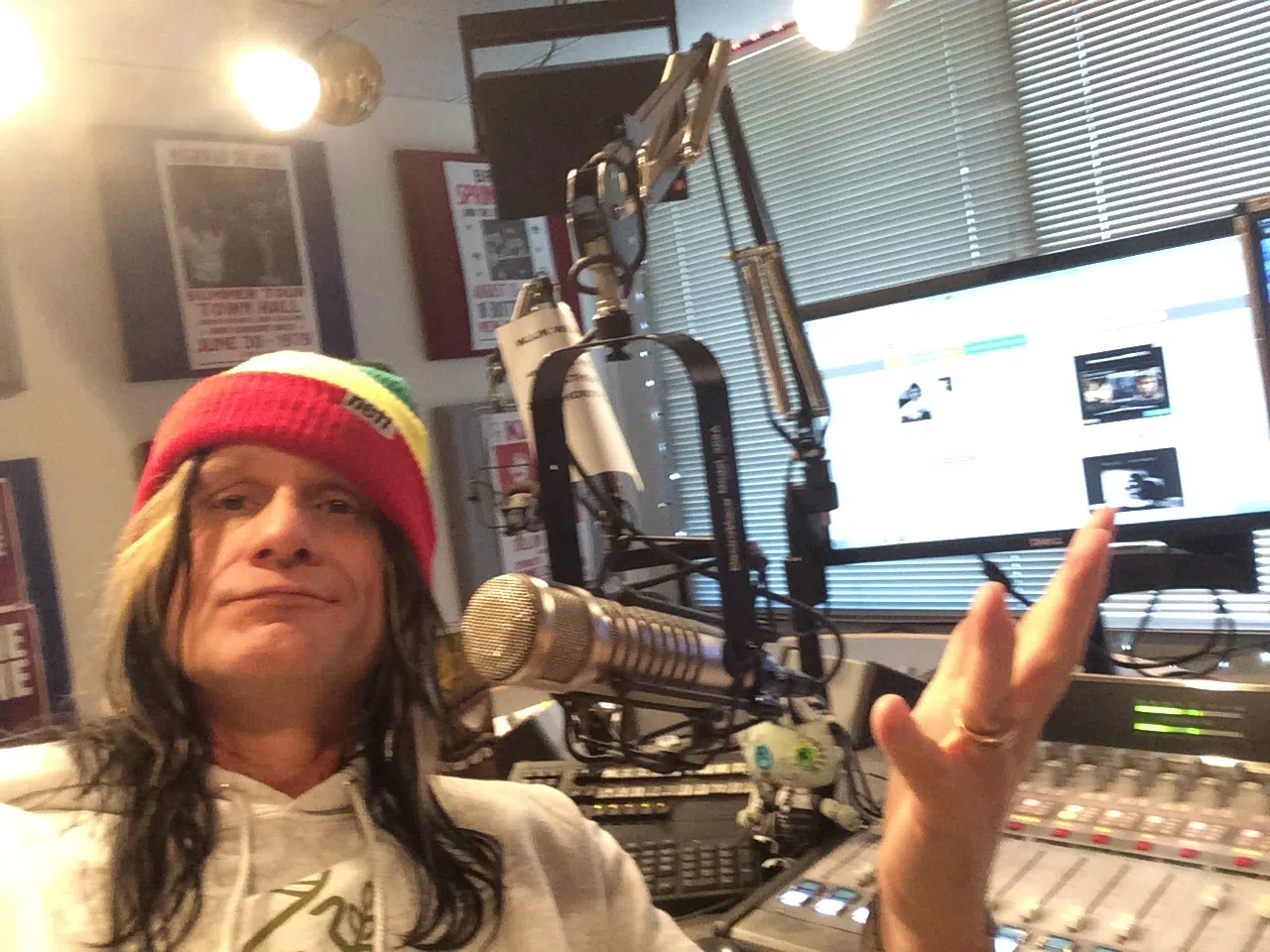 Steve Stuart Oct 23, 2025 Black and white photo of audience with hands raised at a music festival and lights streaming down from above the stage. Soft focus, blurred movement.