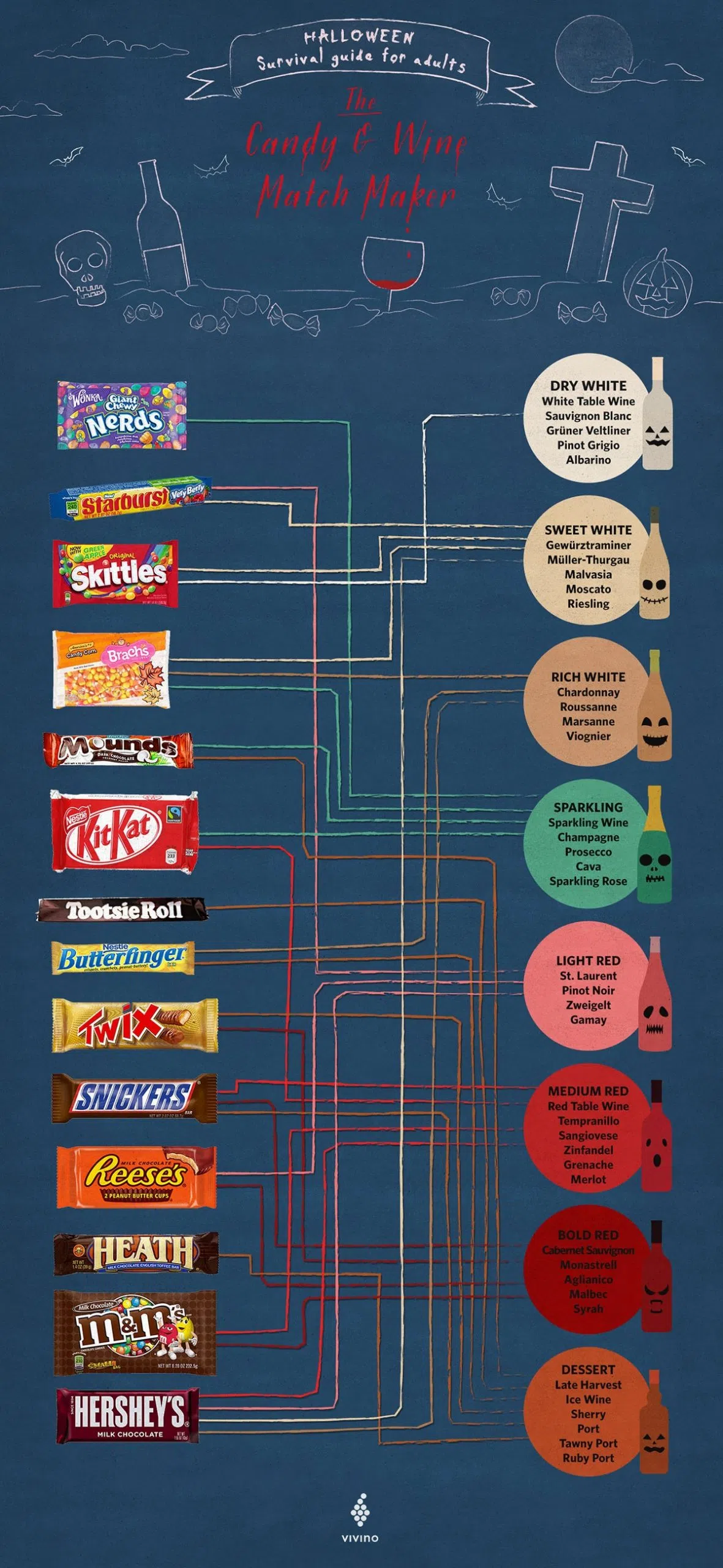 Brilliant! This chart pairs WINE WITH HALLOWEEN CANDY!