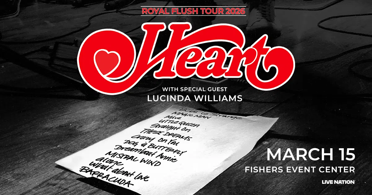 104.5 WJJK welcomes Heart with special guest Lucinda Williams to Fishers Event Center on March 15th! Ticket go on sale Friday, 9/19 at 10am!