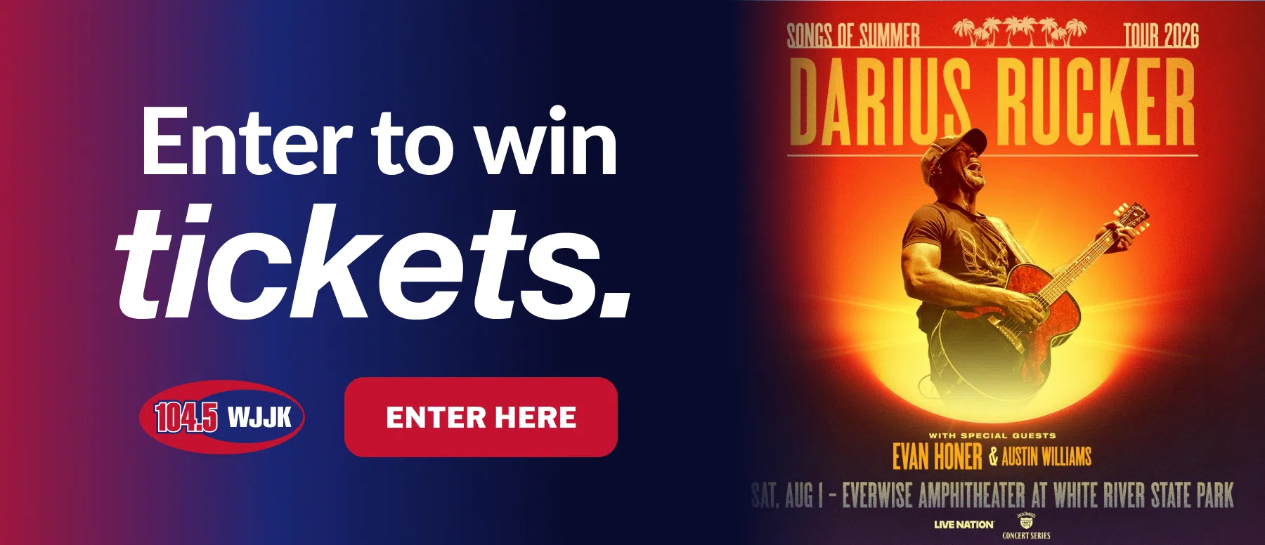 Darius Rucker is coming to Everwise Amphitheater on August 1st with Evan Horner and Austin Williams! Enter here to win tickets!